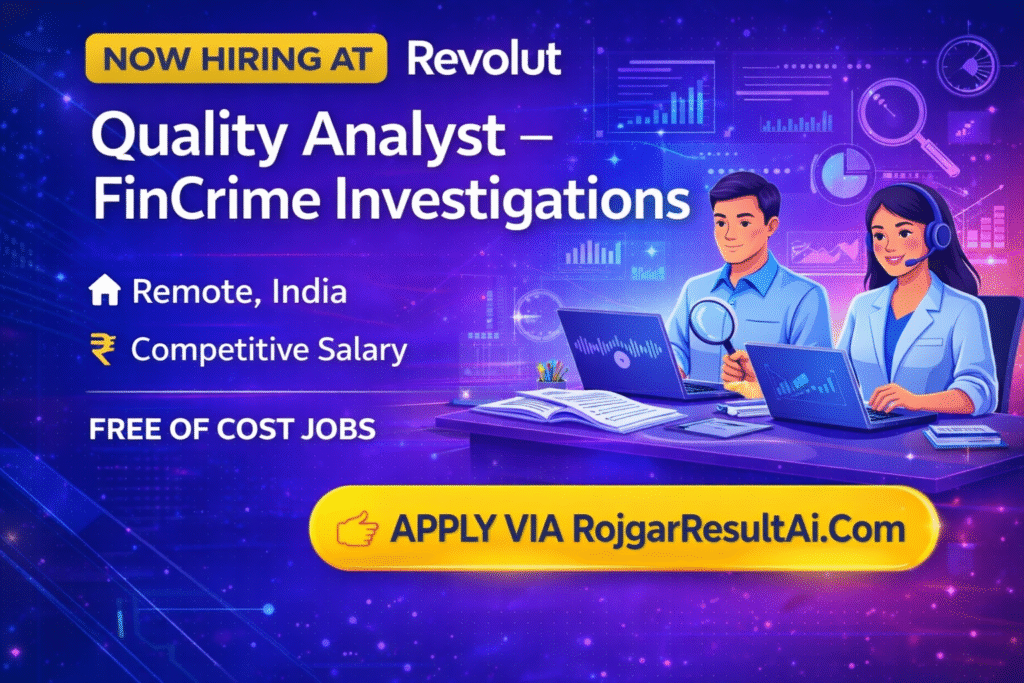 Revolut is hiring a Quality Analyst (FinCrime Investigations) for its remote India operations. This guide covers the Snapshot, company overview, role summary, daily responsibilities, required skills, selection process, salary & benefits, interview prep tips, FAQs, and step-by-step How to Apply. Use this to prepare a complete application for Revolut FinCrime Jobs 2026.