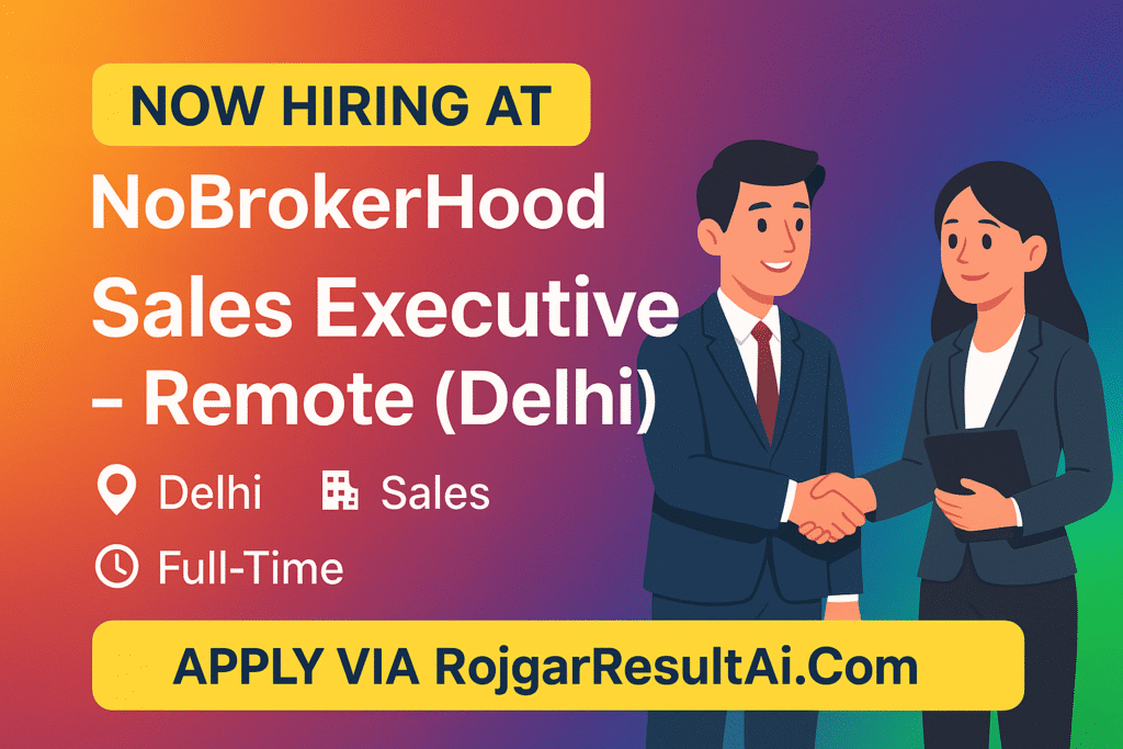 NoBrokerHood is hiring a Sales Executive for a remote role based in Delhi, India. This guide includes a Snapshot, company overview, role details, responsibilities, required skills, selection process, salary & benefits, interview tips, FAQs, and step-by-step How to Apply instructions.